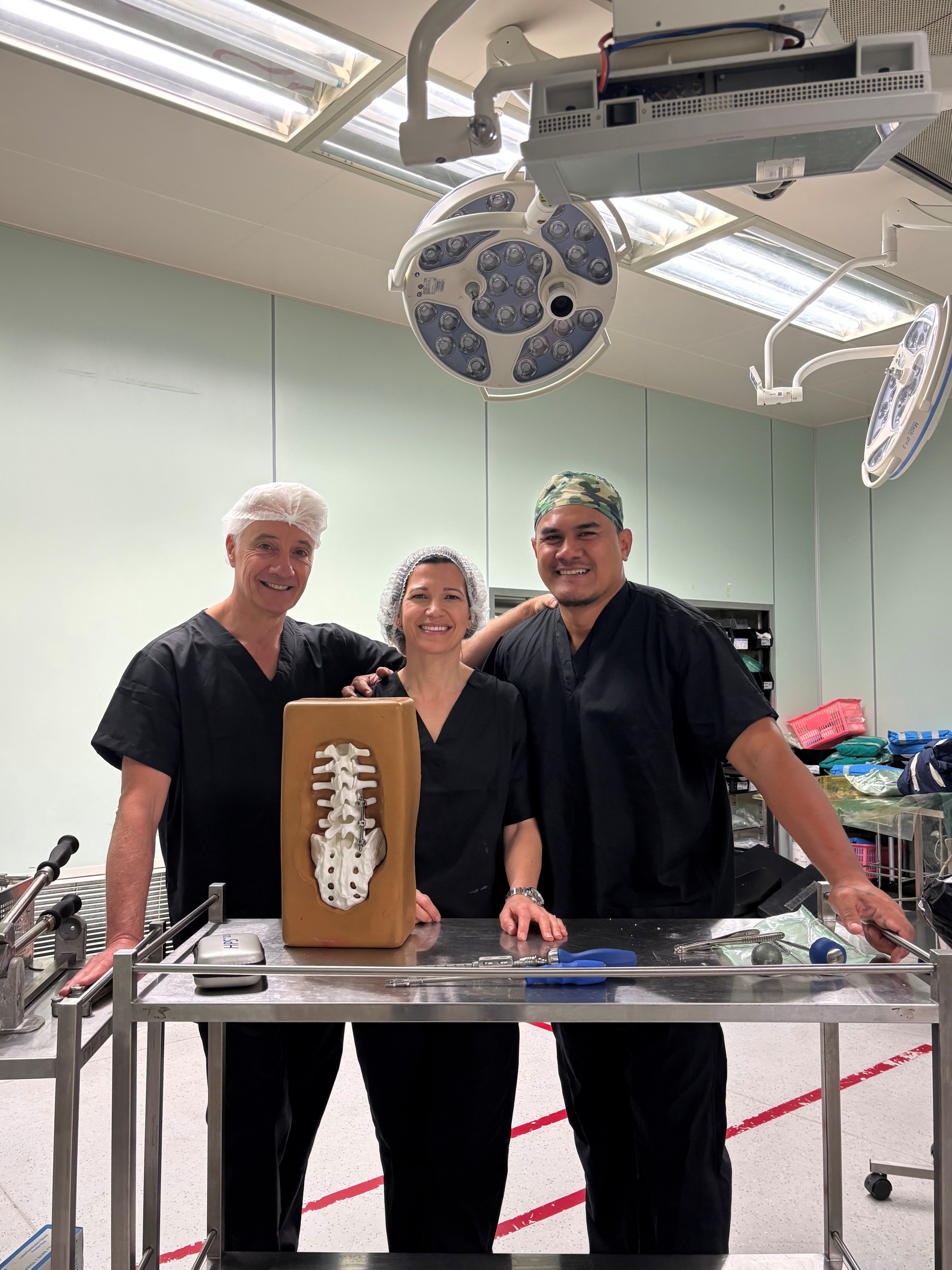 During a recent three day visit, I worked alongside Dr Koen De Ridder, a Wellington-based spine surgeon, and Dr Areta Samuelu, Samoa’s leading spine surgeon, to perform decompression procedures and deliver training to nurses and registrars on the use of the system. Together, we also hosted a spine model workshop designed to enhance surgical skills and confidence within the local team.